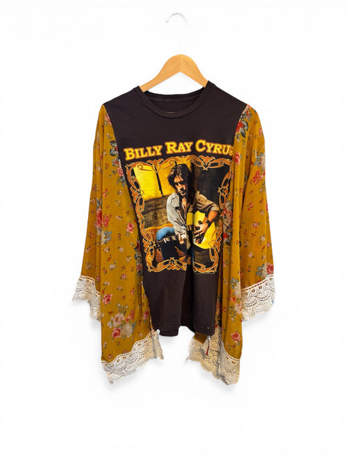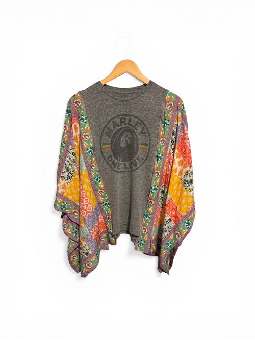 Lace kimono sleeves with bell bottom cuffs.